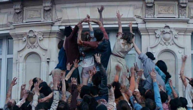 We already know that zombies can be terrifying when they snarl (28 Days Later) and scream (Les Affames), but one of The Night Eats the World‘s many highlights is the realization that they’re even scarier when they’re silent. The undead here look and act the part as they bare their teeth, run when in pursuit, and tear into flesh with abandon, but they do it all without uttering a sound. It adds an additional layer of eerie silence to an already quiet and desolate city with scenes like the one pictured above echoing the horror in silence.