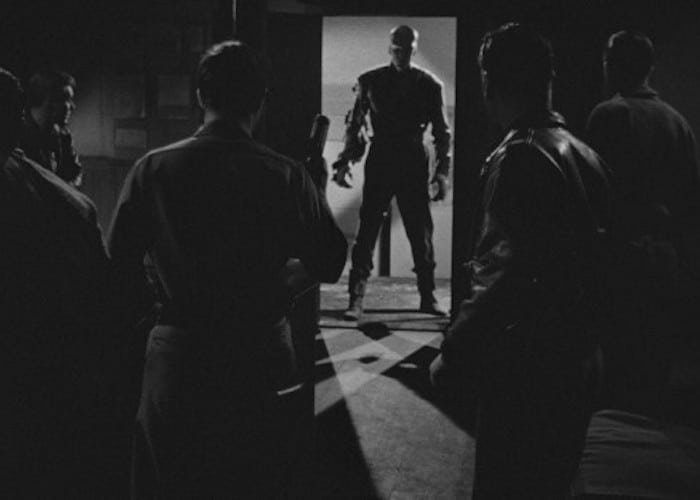 In the Hawks film, the titular Thing is recognizably human, in part because 1950s technology couldn’t write the special effects checks Campbell’s short story wanted to cash. Due to its limitations and budget, the titular Thing does not transform at all and is instead rejigged into a sentient, self-duplicating vampiric plant-based lifeform. Or, as Carpenter once put it: “a blood-drinking carrot from outer space.” In terms of its design, the 1951 Thing (played by Gunsmoke‘s James Arness) is really just a frigid Frankenstein without the pathos; a hulking golem with a raised forehead, rubber hands, and a jumpsuit. After forty-minutes of build-up, the film largely obscures Arness in shadow, a move Bottin would absolutely respect (when it came to lighting his creations, Cundy describes Bottin as “sensitive”). Shots of Arness’ imposing silhouette and the film’s impressive immolation sequence are when the creature is at its most effective. But, all told, the film doesn’t innovate beyond the simplistic standard of the time.